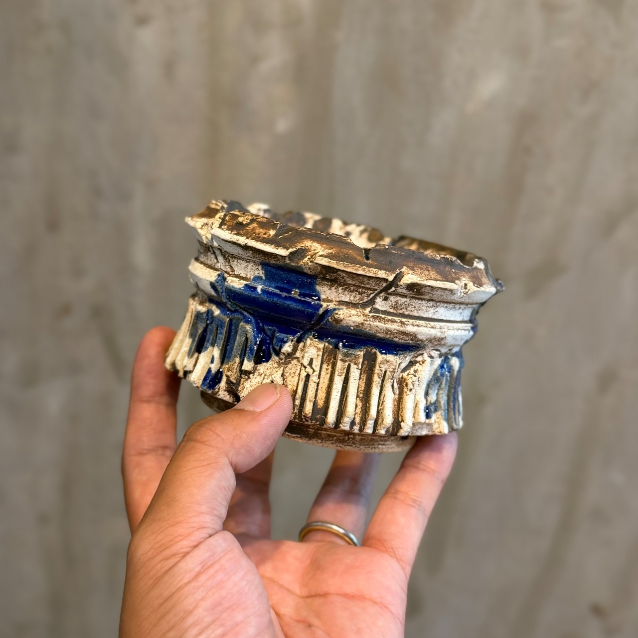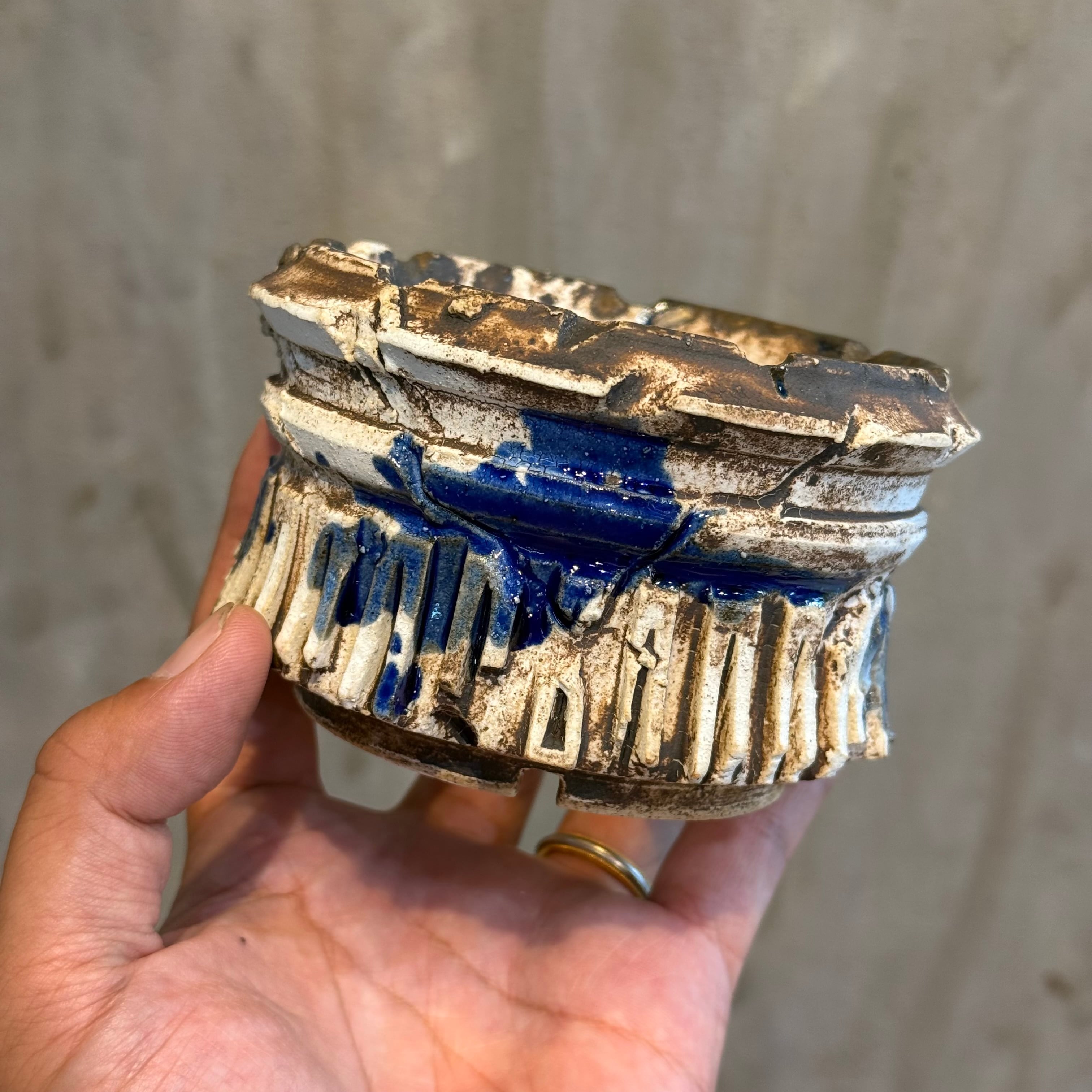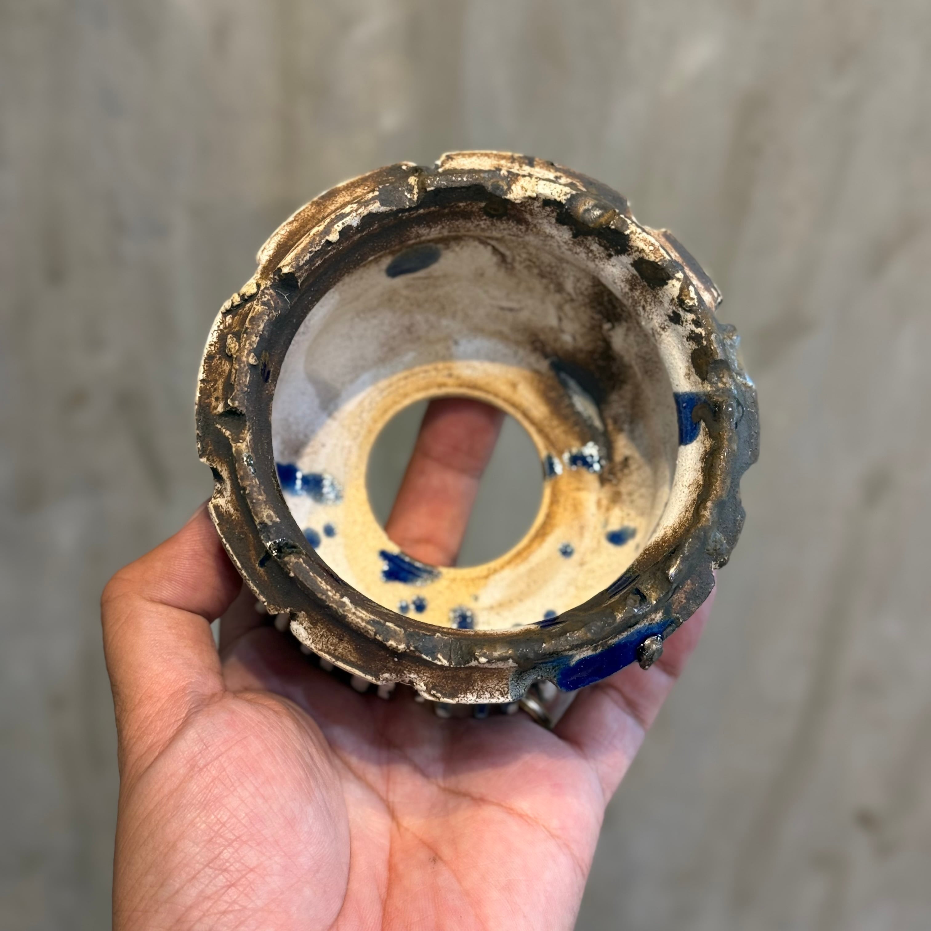 こちらはホワイトの釉薬をベースにヴィンテージのような錆、