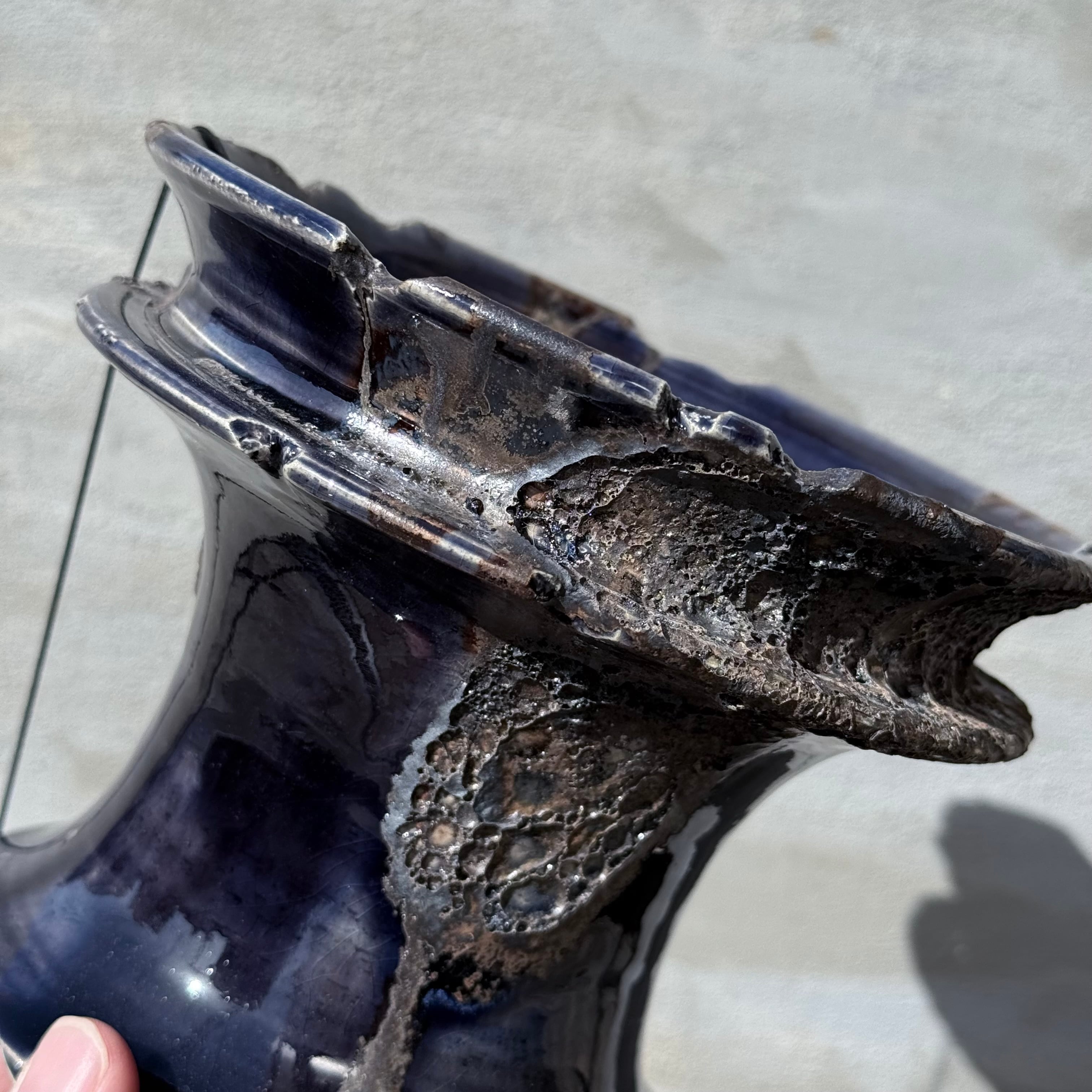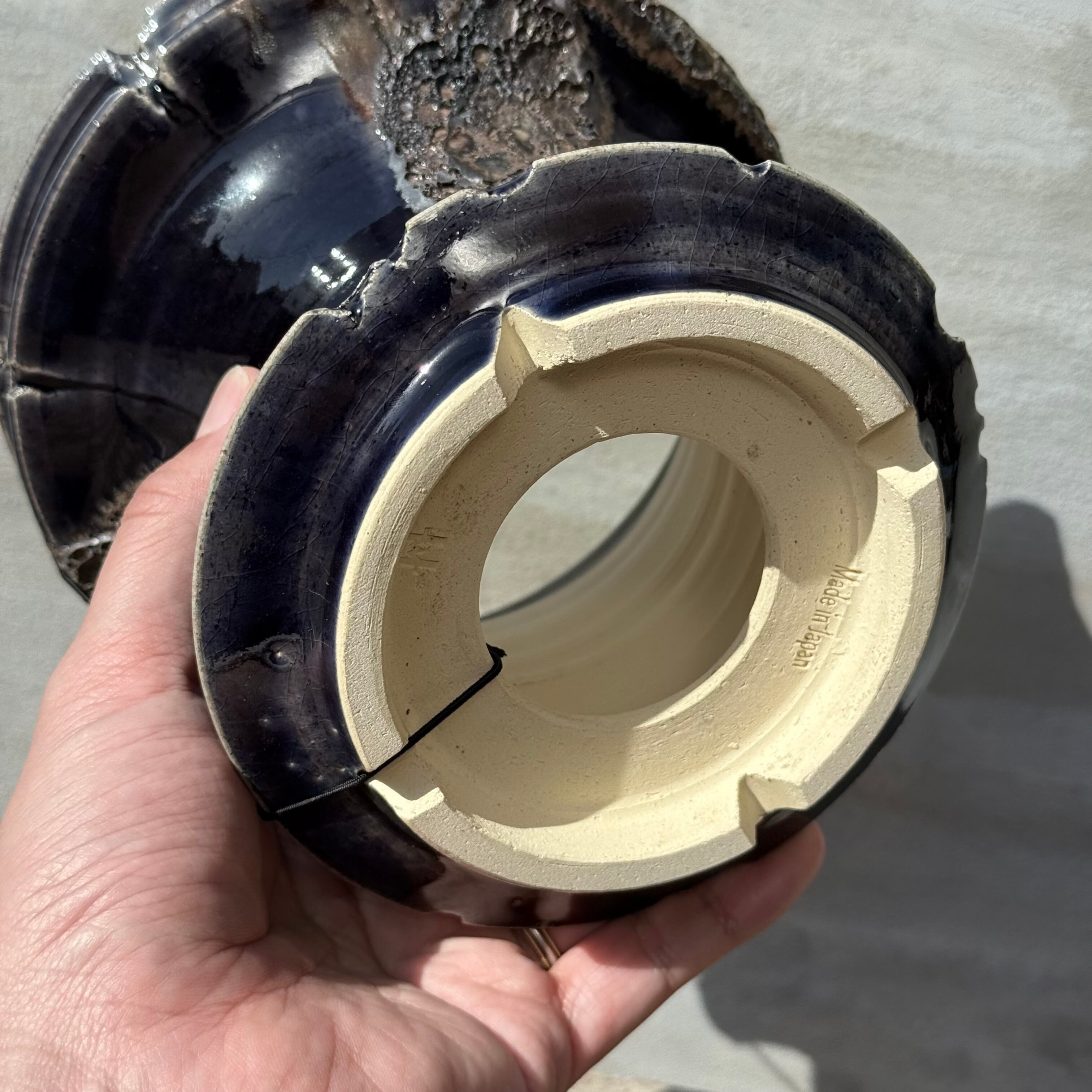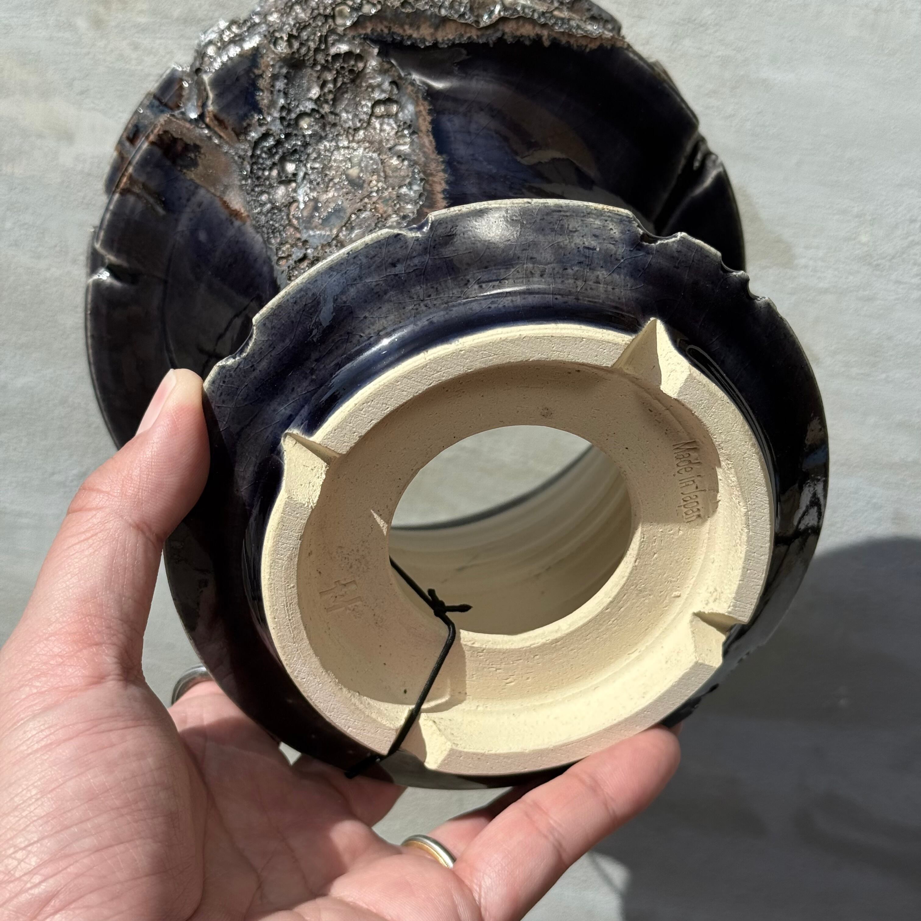 光沢のある、ダークネイビーの釉薬に