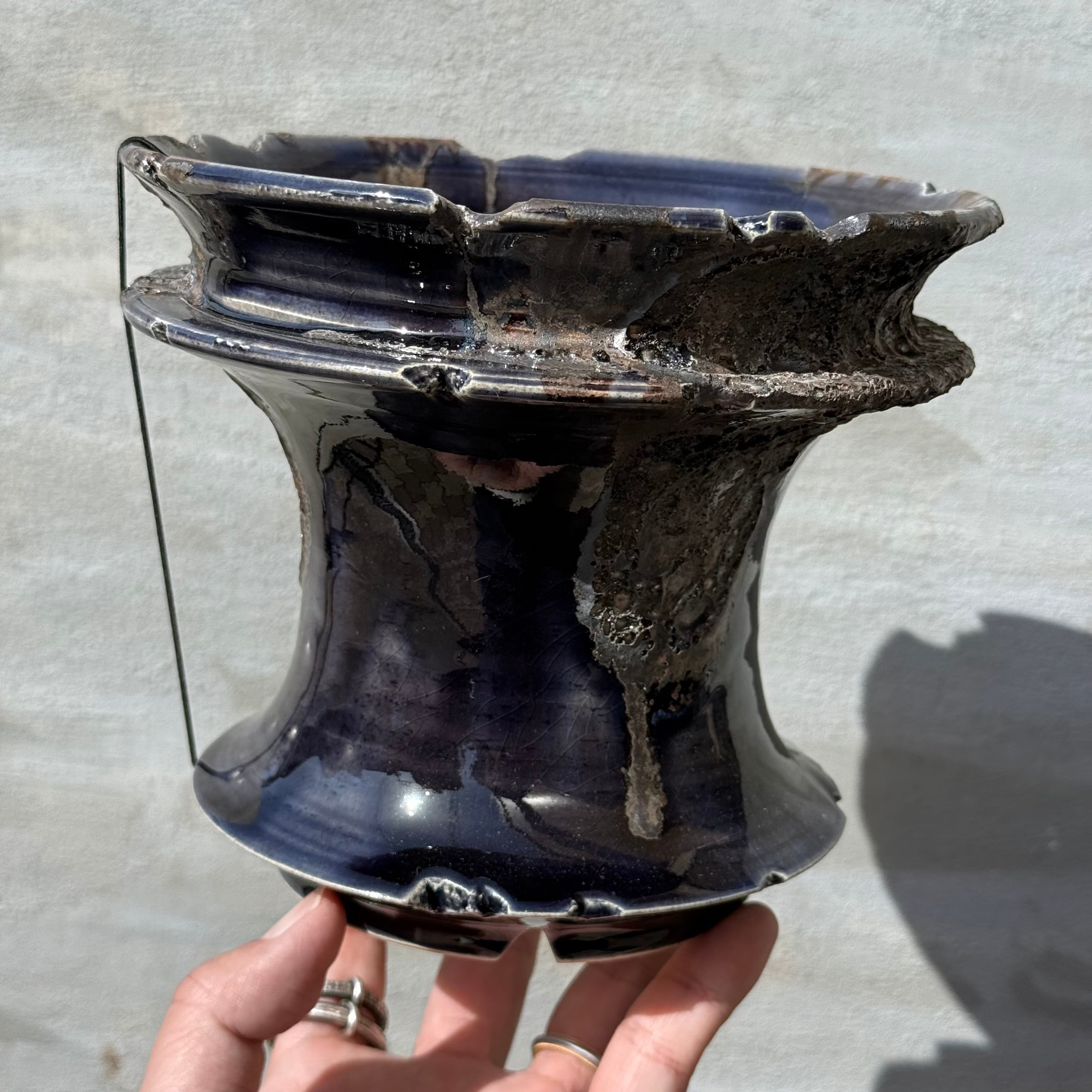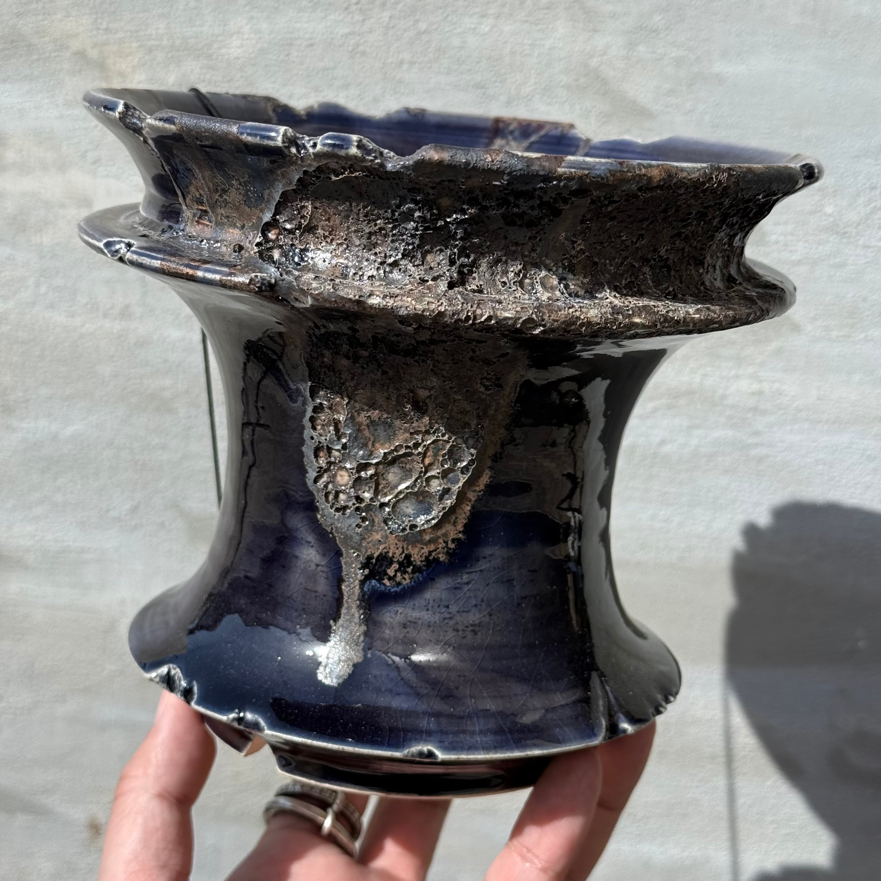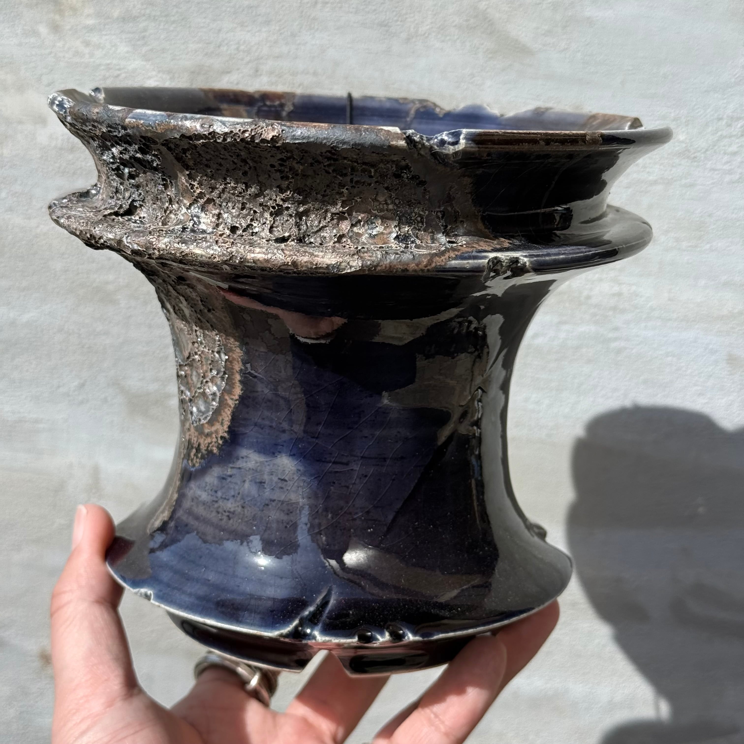 光沢のある、ダークネイビーの釉薬に