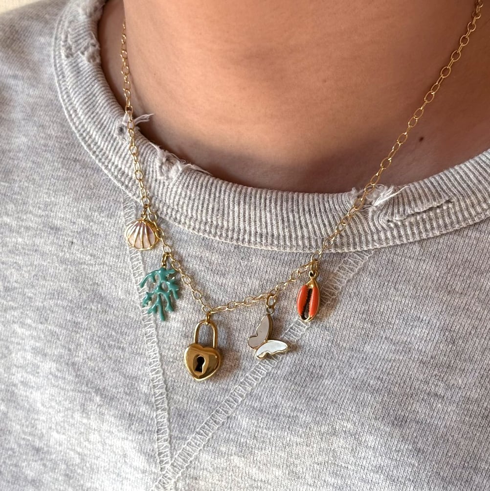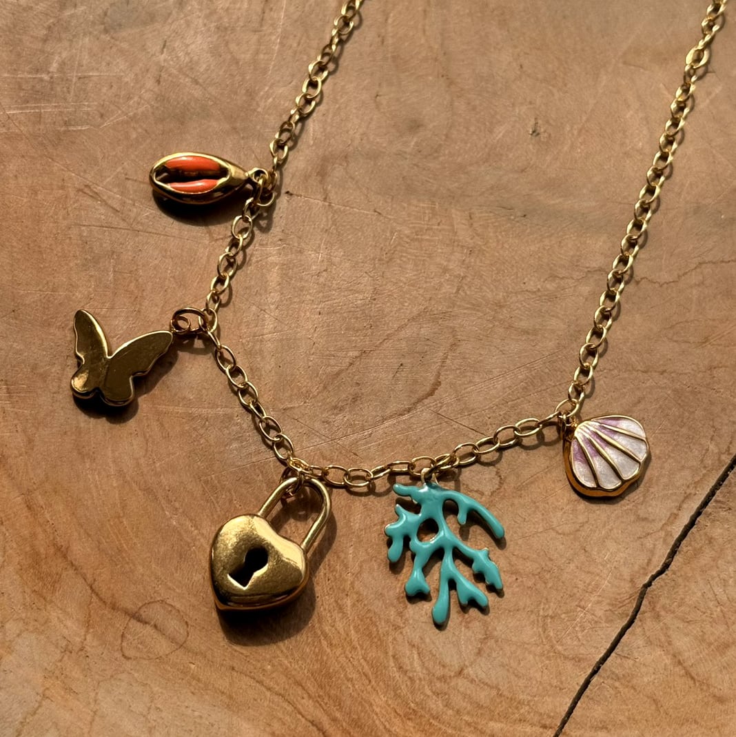 動くと揺れるチャーム、ノスタルジックでキュートなチェーン。