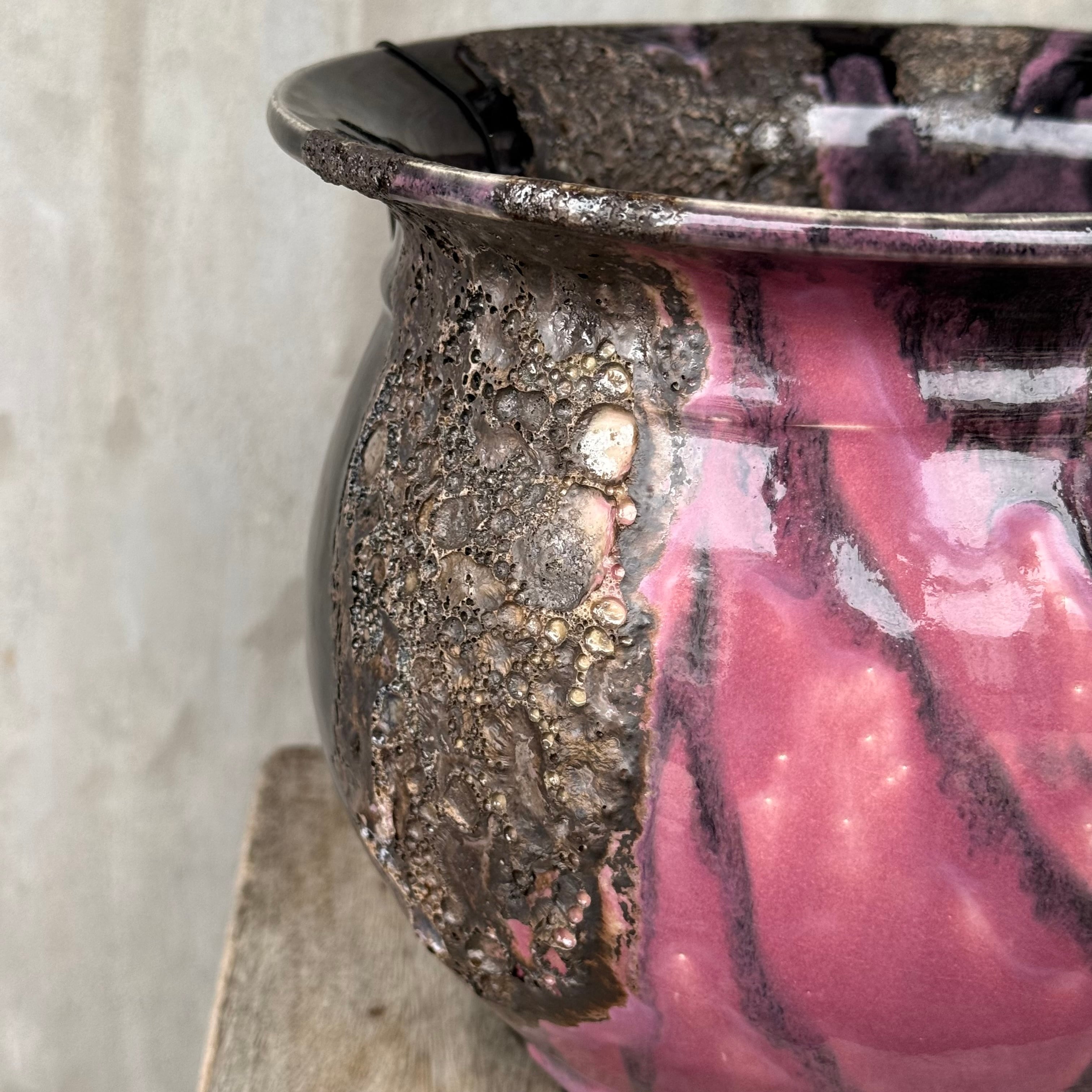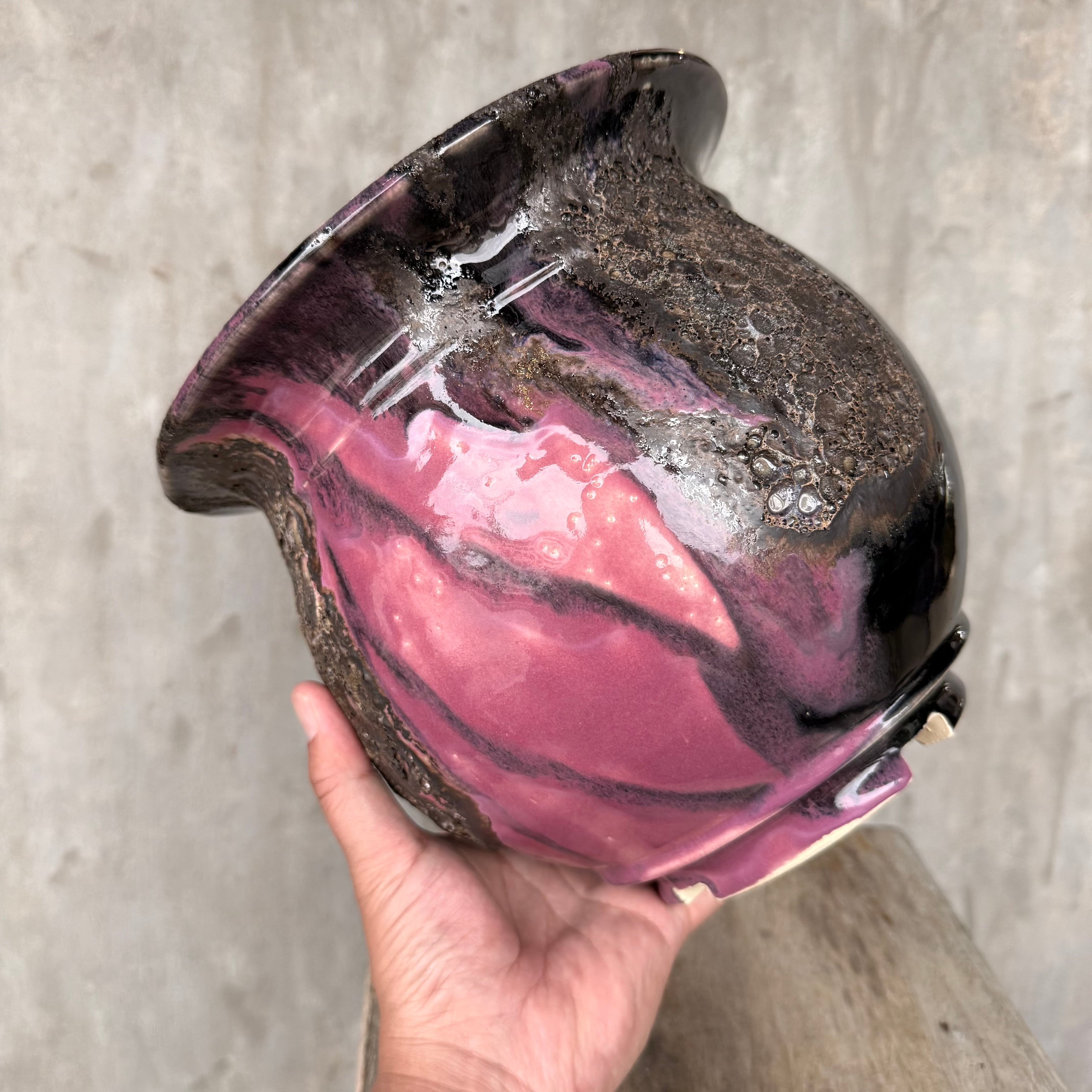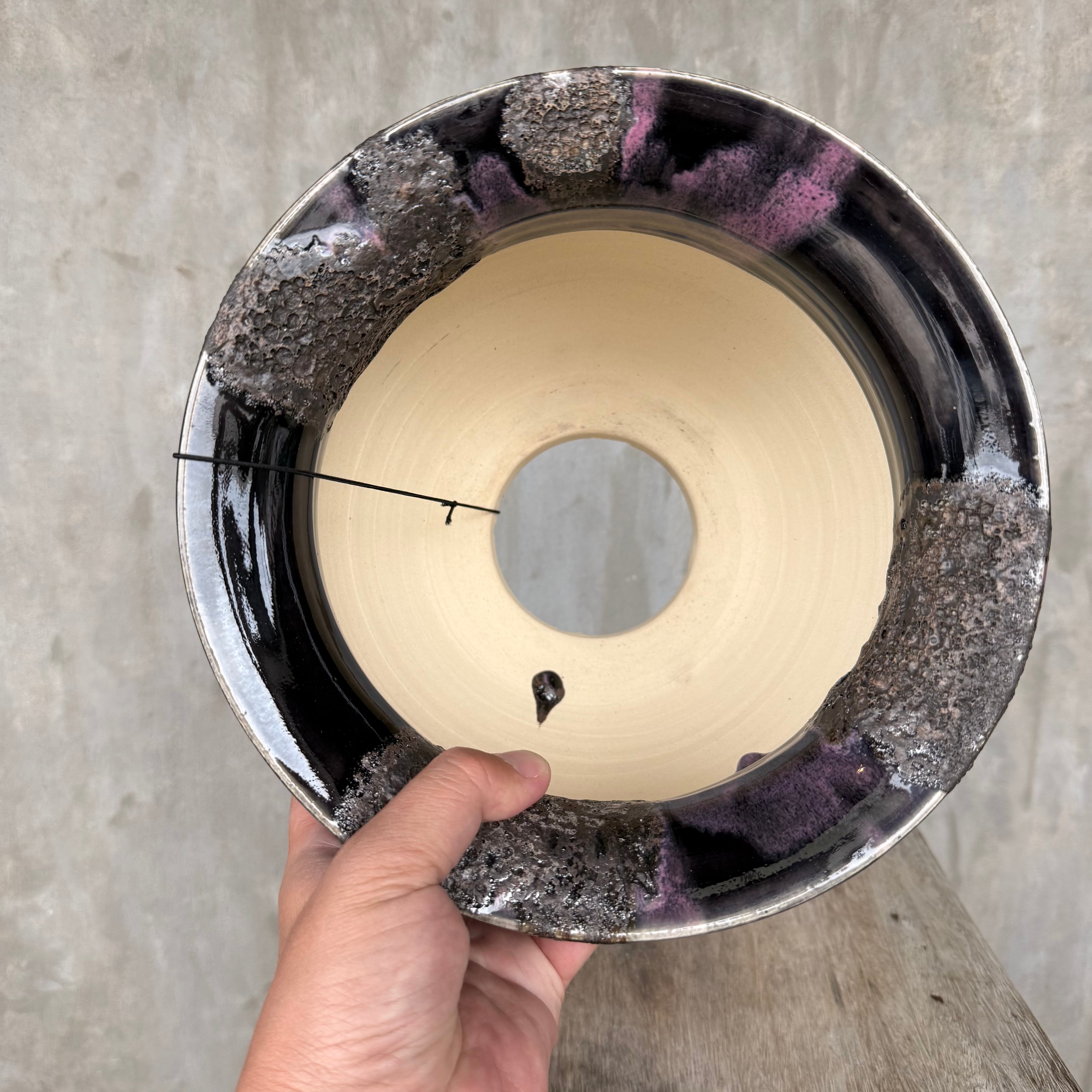 ダーク系の釉薬と発泡釉薬と合わせかけなので、