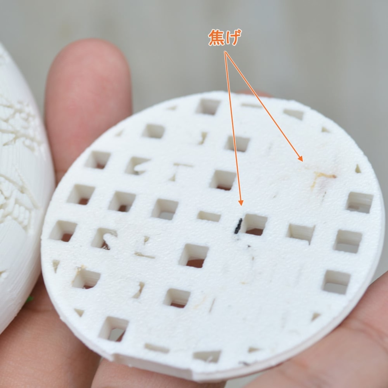 樹脂の都合上、写真8枚目のように、小さな焦げ目が付きます。
